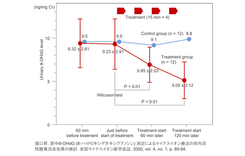 Phương pháp trị liệu khử electron làm giảm nồng độ 8-OHdG trong nước tiểu. 8-OHdG là một tác nhân gây tổn hại đến DNA do sự ô-xy hóa gây nên.