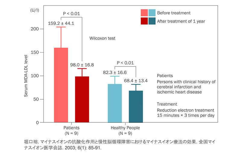Điều trên cho thấy khả năng làm giảm sự ô-xy hóa và gây xơ cứng động mạch do LDL của phương pháp trị liệu khử electron.