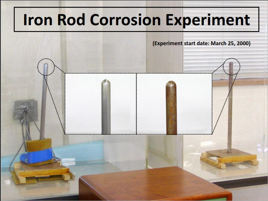 - Thí nghiệm được RELTEC thực hiện từ năm 2000 với 2 thanh sắt đặt trong điều kiện môi trường giống nhau.
