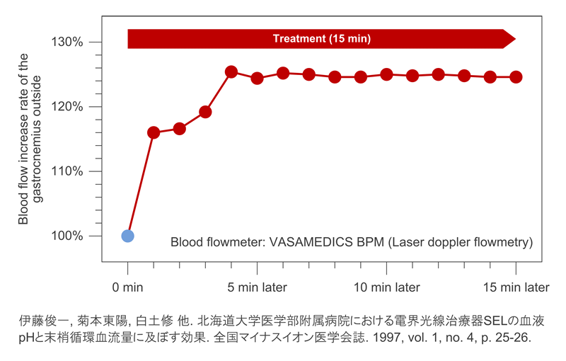 RELTEC đã khẳng định rằng thiết bị trị liệu khử electron làm tăng lưu lượng máu ngoại biên trên 40 người khỏe mạnh (với độ tuổi trung bình là 26,4 ± 3,2). Phương pháp điều trị này làm tăng lưu lượng máu ngoại biên trung bình lên đến 25.8 ± 11.3%