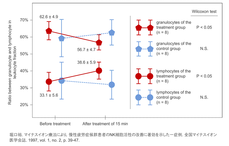 Phương pháp trị liệu khử electron trong 15 phút làm tăng tỷ lệ lymphocytes và làm giảm tỷ lệ granulocytes. Lymphocyte là một tế bào bạch cầu quan trọng trong việc chống ung thư và vi-rút.