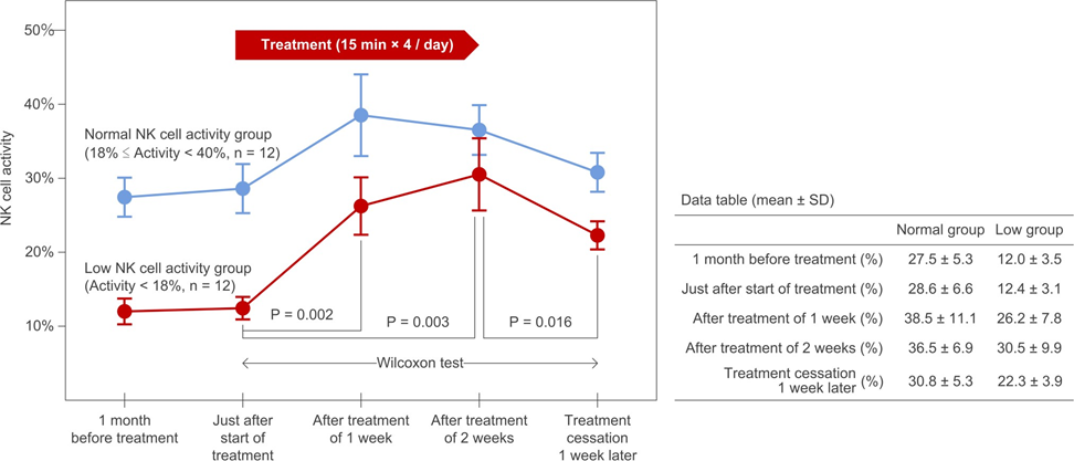 Phương pháp trị liệu khử electron tăng cường khả năng hoạt động của tế bào NK. Tế bào NK là một loại bạch huyết bào gây độc cho tế bào và được xếp vào loại miễn dịch tự nhiên. Vai trò của các tế bào NK cũng tương tự như các tế bào T gây độc tế bào trong miễn dịch đặc hiệu ở động vật có xương sống. Các tế bào NK cung cấp những đáp ứng nhanh tới các tế bào bị nhiễm virus, hoạt động trong khoảng 3 ngày sau khi nhiễm trùng, và kháng lại sự hình thành khối u.